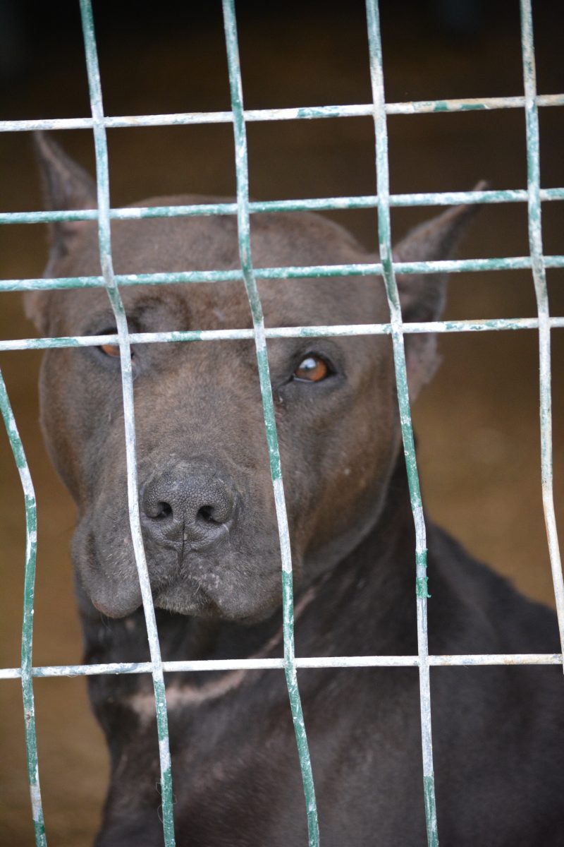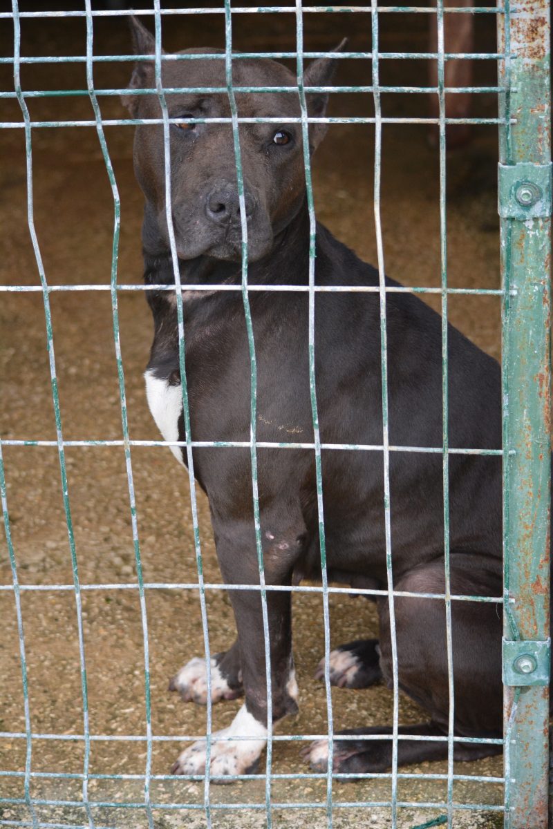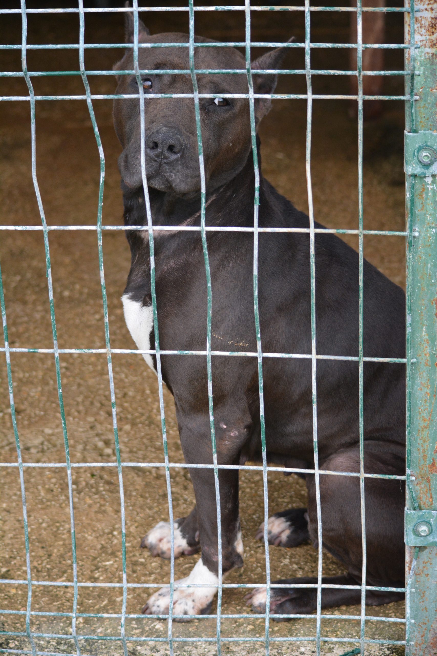 Verträglichkeit: Sitzt mit einem Rüden im Zwinger; Hündinnen nicht bekannt; Katzen: Kann nicht getestet werden.