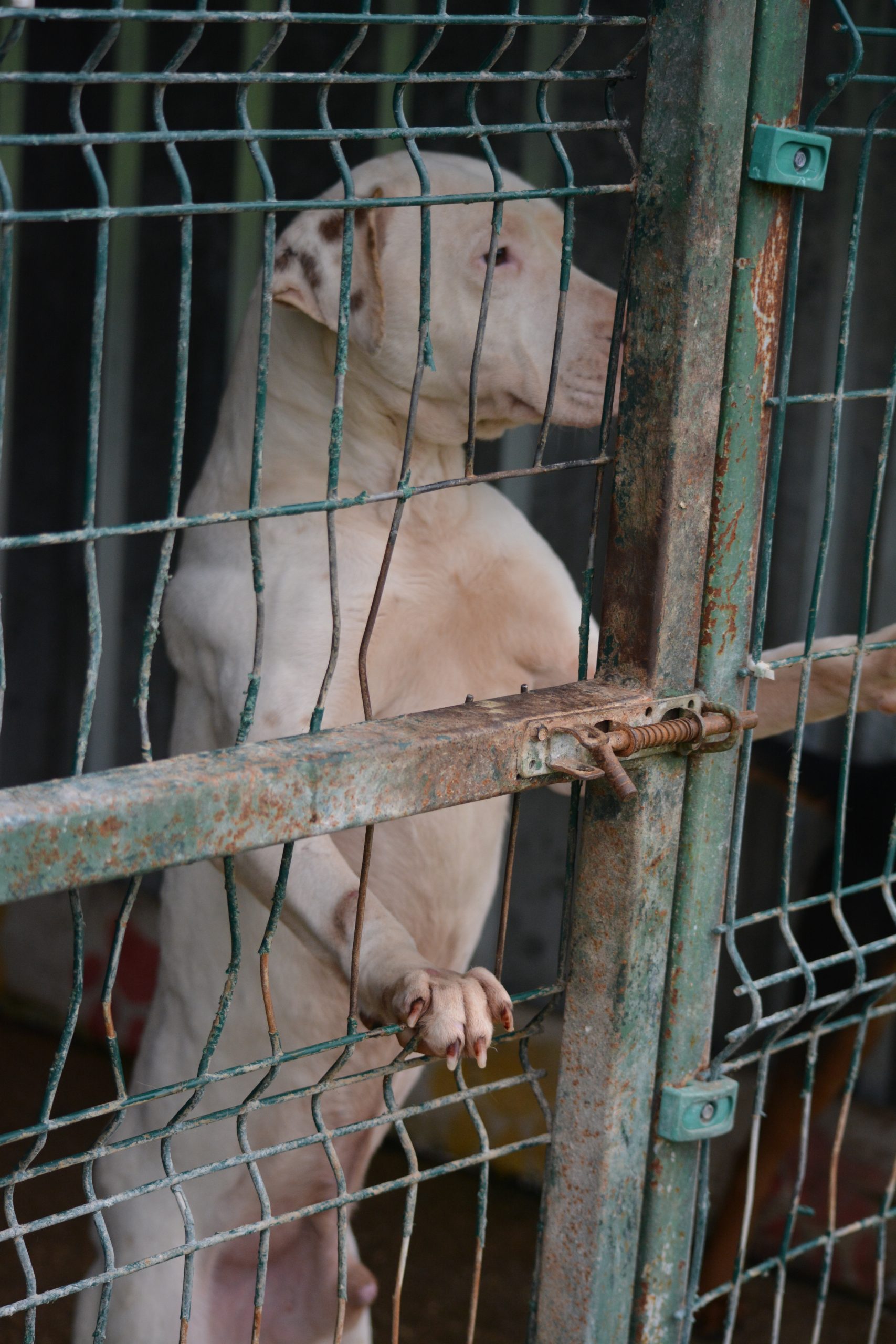Verträglichkeit: Sitzt mit einer Hündin im Zwinger; Rüden nicht bekannt; Katzen: Kann nicht getestet werden.